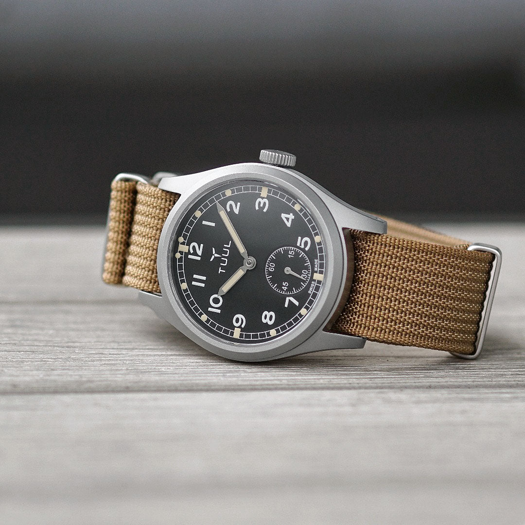 An evolution of the iconic Dirty Dozen watches. Preserving the classic field watch aesthetic, we've utilized trademark features of the originals such as a railroad minute track and sub-seconds dial, while introducing unique dial variations and case materials.